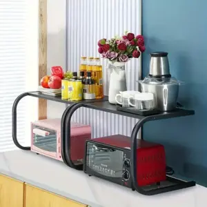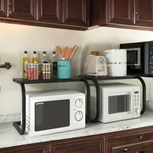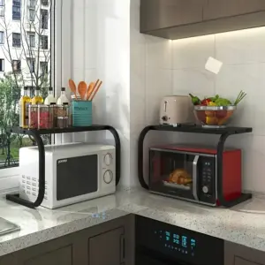 This stand is designed for your microwave and comes with a top shelf to store spices, utensils, or even mugs and cutlery