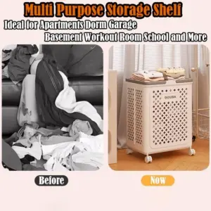 قابل للطي علشان يتخزن مسطّح من غير ما ياخد مساحة، وكمان واسع يشيل كمية كبيرة من الهدوم أو لعب الأطفال 👶