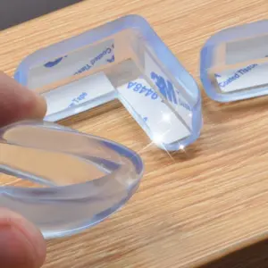 حامي زوايا أثاث سيليكون شفاف 4 قطع لحماية الأطفال من الإصابات – Transparent Silicone Furniture Corner Protectors 4 Pieces for Child Safety