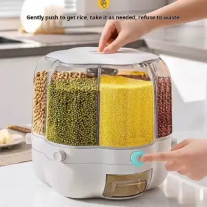 ديسبنسر دوّار بـ 6 خانات منفصلة لتنظيم البقوليات والحبوب زي الأرز والمكرونة والشعيرية والعدس والفول في مكان واحد