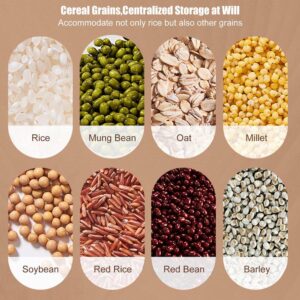 Rotating dispenser with 6 separate grids to store dry foods like rice, pasta, noodles, lentils, and beans in one tidy spot