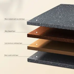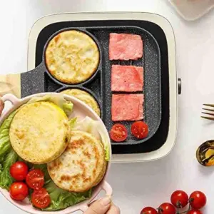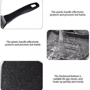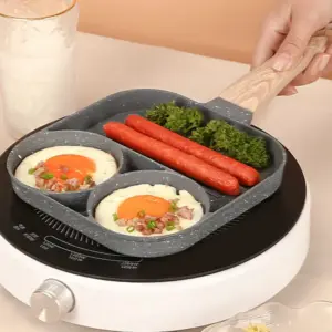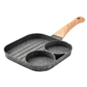 طاسة ألومنيوم بطبقة جرانيت 3 أقسام بمقبض خشبي لقلي البيض والبرجر واللحوم – Granite Aluminum Frying Pan with 3 Sections & Wooden Handle