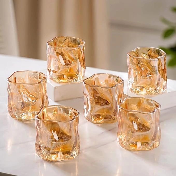 طقم كوبايات زجاج كريستال 6 قطع باللون العسلي لتقديم المشروبات الباردة والساخنة – Crystal Glass Cups Set 6Pcs Amber Color for Hot & Cold Drinks