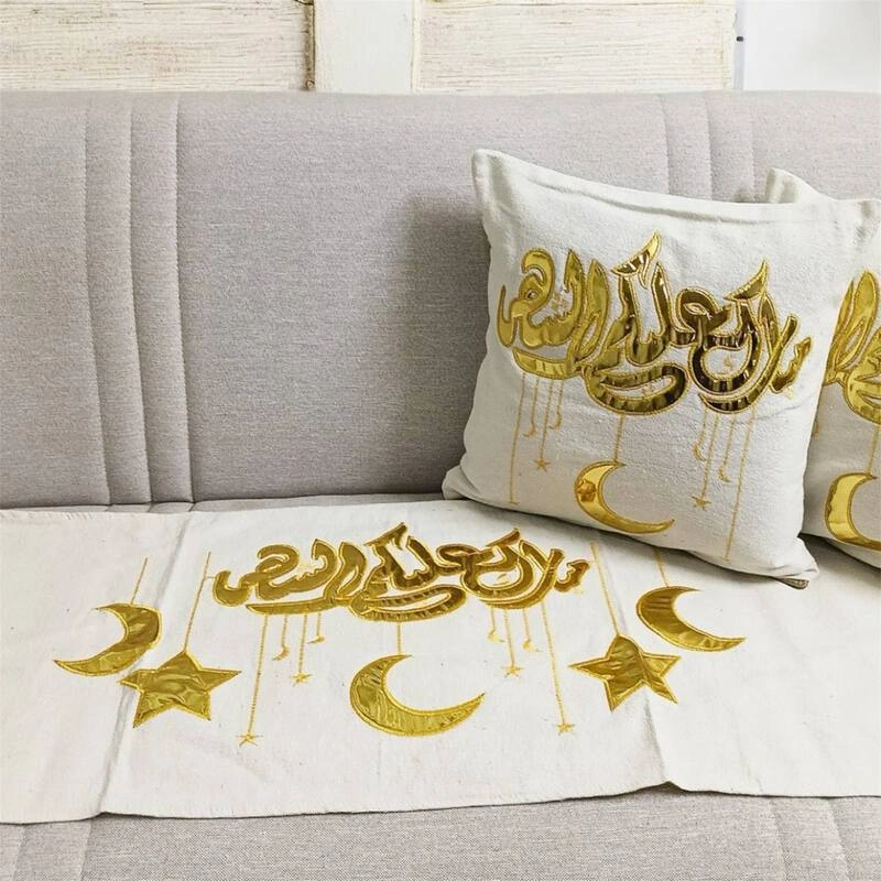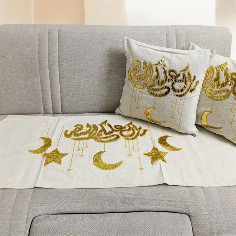 طقم مبارك عليكم الشهر 3 قطع رانر سفرة و2 كوشن – Mubarak Alaykom El Shahr Set 3 Pieces Table Runner & 2 Cushions