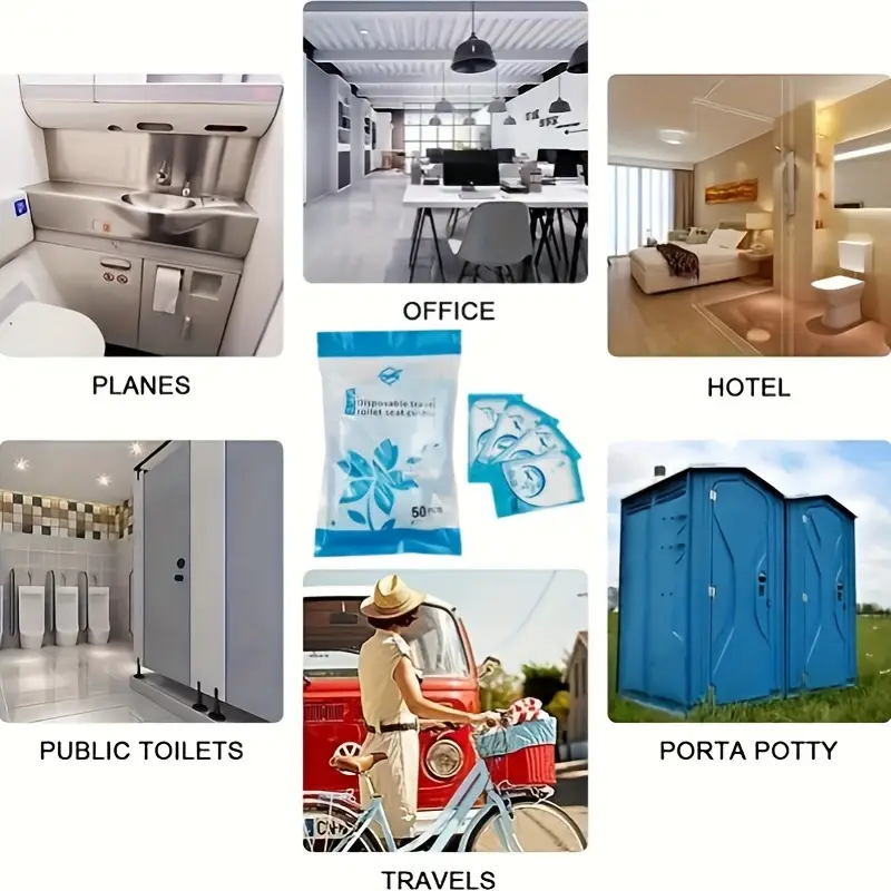 غطاء تواليت ضد الجراثيم للاستعمال مرة واحدة 50 قطعة للاماكن العامة والرحلات – Antibacterial Disposable Toilet Seat Covers 50 Pcs for Public Places & Travel