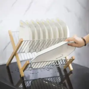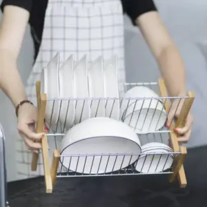مطبقية معدن وخشب مقاومة للصدأ قابلة للطي – Metal & Wood Dish Rack Rust Resistant and Foldable
