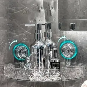 This bathroom organizer mounts easily using strong suction cups — no drilling, no nails, and no wall damage 👌